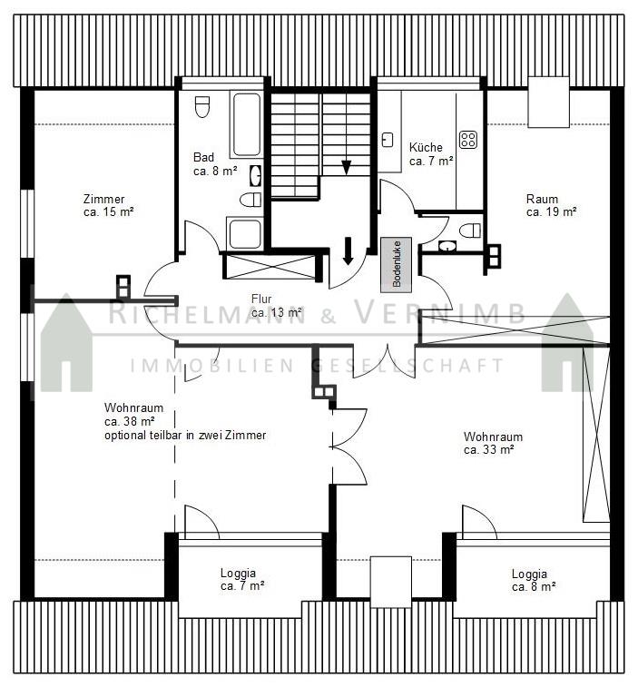 Diese außergewöhnlich großzügig geschnittene Dachgeschosswohnung befindet sich im zweiten Obergeschoss einer 1978 errichteten, sehr gepflegten Wohnanlage mit insgesamt 52 Wohneinheiten. Die Immobilie überzeugt durch ihre großzügige Wohn- und Nutzfläche von ca. 141 m² sowie einen besonderen Zusatznutzen: einen ca. 50 m² großen Bodenraum, der sich direkt über der Wohnung befindet und ausschließlich dieser Einheit zugeordnet ist. Dieser zusätzliche Raum ist bequem über eine Einschubtreppe aus der Wohnung heraus zu erreichen und bietet vielfältige Nutzungsmöglichkeiten.
