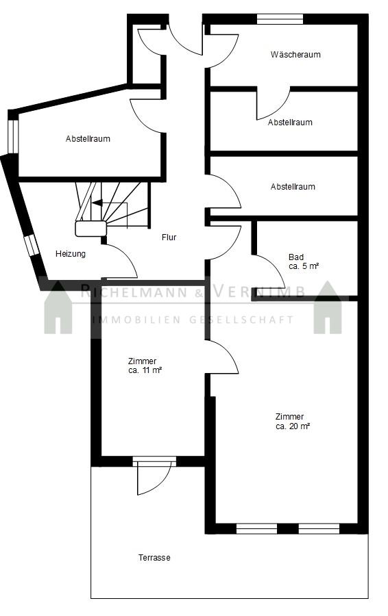Neben den üblichen Abstellräumen im Gartengeschoss des Hauses bietet sich hier eine kleine zwei Zimmer-Wohnung, mit einer weiteren Terrassenfläche zur Elbe, für unterschiedliche Nutzungskonzepte an. Diese Einheit befindet sich derzeit in noch keinem ausgebauten Zustand und müsste bei Bedarf vom zukünftigen Eigentümer nach seinen Vorstellungen finalisiert werden.